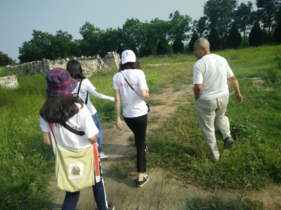 最后团队来到了天王殿,在这里我们遇到了李老师,李老师如今已有七十高龄,精神矍铄,兴致勃勃地向我们讲述了立杆测影的原理和方法,“太阳几杆高,影有几杆长”,李爷爷把枯燥晦涩的知识用浅显易懂的语言向我们娓娓道来。李爷爷二十年如一日的坚守在这里,熬过的是岁月,守住的是文化。