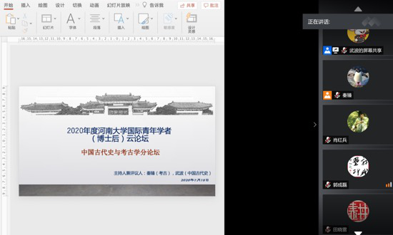 2020年7月18日,由bwin必赢主办,bwin官网承办的国际青年学者(博士后)云论坛在腾讯会议成功举行。本次论坛分为中国古代史与考古学、中国近现代史和世界史三个分论坛。论坛吸引了来自英国约克大学、伦敦大学、柏林自由大学、中国科学院、中国社会科学院大学、复旦大学、中山大学、北京师范大学、华东师范大学、华中师范大学、陕西师范大学等多所国内外知名高校与科研机构的青年学者、博士后及在读博士生参加。